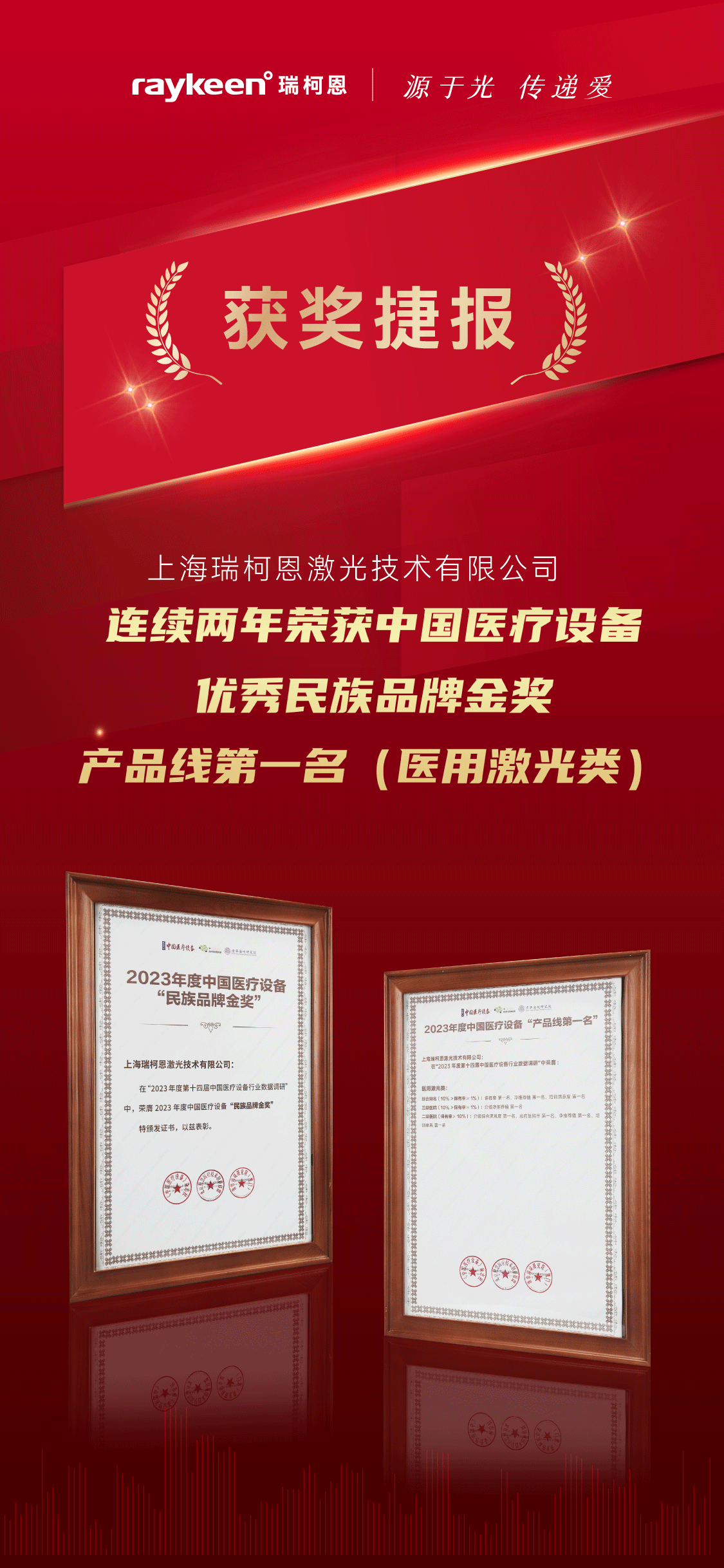 • 喜报 | 388vip太阳集团连续两年荣获中国医疗设备“优秀民族品牌金奖”“产品线第一名(医用激光类)”